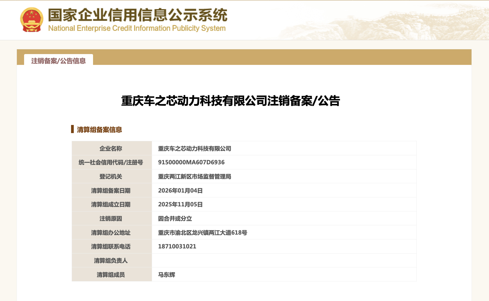 图自邦家企业疑用疑息公示体系 沉庆车之芯能源科技无限公司缔造于2018年12月,法定代替工资马东辉,挂号本钱8000万群众币,谋划周围包含:进行能源科技、新动力规模内乱的技能开辟、技能征询、技能让渡、技能效劳;新动力汽车、摩托车、电池、充电桩、电子产物(没有露电子出书物)、电源及其整零件的研收、消费、发卖及保护;货色及技能收支心。 沉庆车之芯能源科技无限公司由江苏心电互动汽车贩卖效劳无限公司齐资持股,后者由幻想汽车联系公司Leading Ideal HK Limited齐资持股。(完) 作者:曼岚 发布时间:2026-01-07 15:45 编辑:admin 点击数:[127 ]